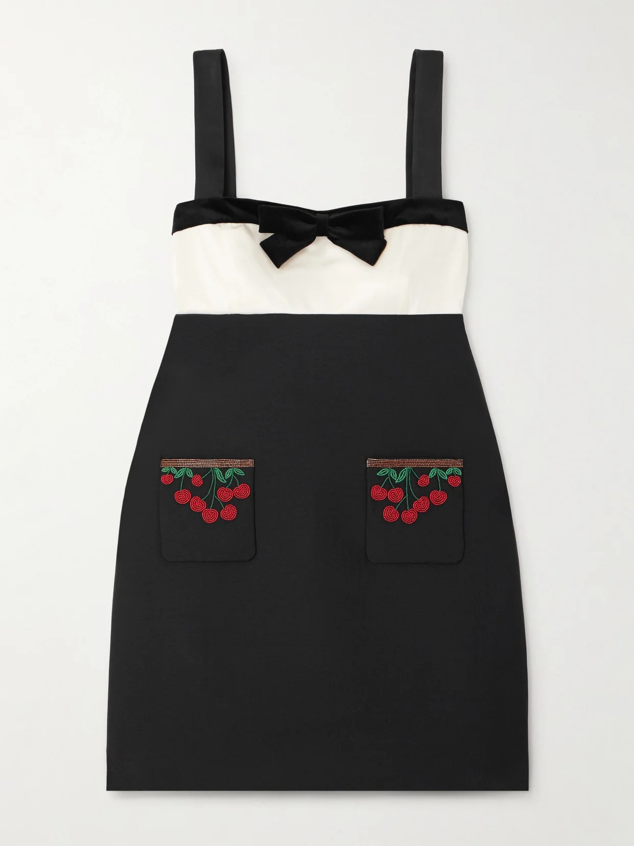 The beaded cherries on the pockets of Valentino Garavani's dress are so sweet and playful. Made from wool and silk-blend crepe, it's paneled with contrasting satin at the bodice and adorned with a bow along the velvet-trimmed neckline. Wear yours with ballet flats and a red lip. Large to size. See Size & Fit notes.