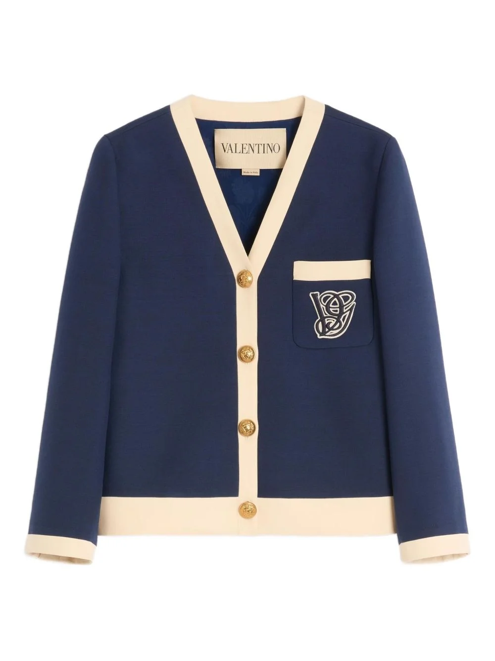 two-tone jacket Highlights - Navy blue - Front button fastening - V-neck - Collarless - Chest patch pocket Made in Italy Composition Outer: Wool 65%, Silk 35% Lining: Acetate 74%, Silk 26%