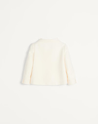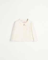 Crepe Couture jacket - Jewel button detail - Front closure with lined press studs - Crepe Couture (65% Virgin Wool, 35% Silk) - Viscose lining (100% Viscose) - Length: 51 cm / 20.1 in. from the shoulders in an Italian size 40 - Sleeve length: 70 cm / 27.6 in. from the center back in an Italian size 40 - The model is 176 cm / 5'9" tall and wears an Italian size 40 - Made in Italy The look of the model is completed by a Valentino Garavani Viva Superstar Bag and Valentino Garavani Adamantine Shoes. Product code: 6B3CE3Y01CF_A03
