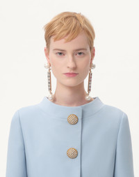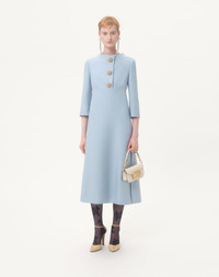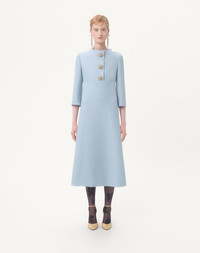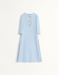 Crepe Couture Midi Dress - Jewel button detail - Rear zipper closure with hook-and-eye fastening - Crepe Couture (65% Virgin Wool, 35% Silk) - Lined - Length: 120 cm / 47.2 in. from the shoulders in an Italian size 40 - Sleeve length: 67 cm / 26.3 in. from the center back in an Italian size 40 - The model is 176 cm / 5'9" tall and wears an Italian size 40 - Made in Italy The look of the model is completed by a Valentino Garavani Bag and Valentino Garavani Bowow Shoes. Product code: 7B3VAEU51CF_BWD