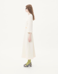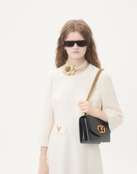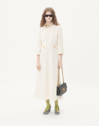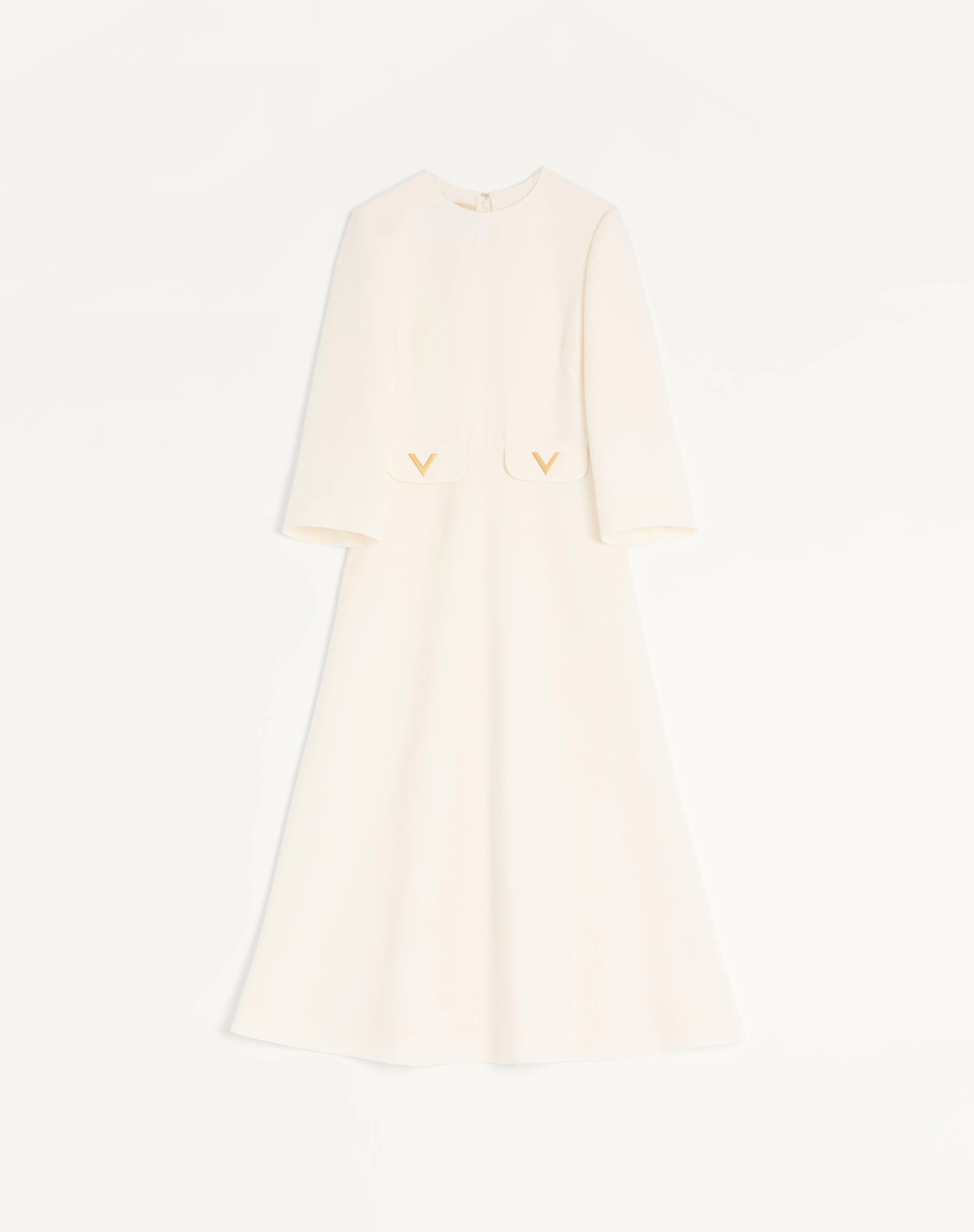 Crepe Couture Midi Dress - V Gold detail - Rear zip closure with hook-and-eye fastening - Crepe Couture (65% Virgin Wool, 35% Silk) - Habotai lining (100% Silk) - Length: 126 cm / 49.6 in. from the shoulders in an Italian size 40 - The model is 176 cm / 5'9" tall and wears an Italian size 40 - Made in Italy The look of the model is completed by a Valentino Garavani Vain Bag and Valentino Garavani Adamantine Shoes. Product code: 7B3VAEU91CF_A03