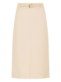 belted skirt Highlights - Beige - Leather belt - Gold buckle - Straight hem - Side pockets Made in Italy Composition Wool 65%, Silk 35% Washing instructions Read Manufacturer Guidelines