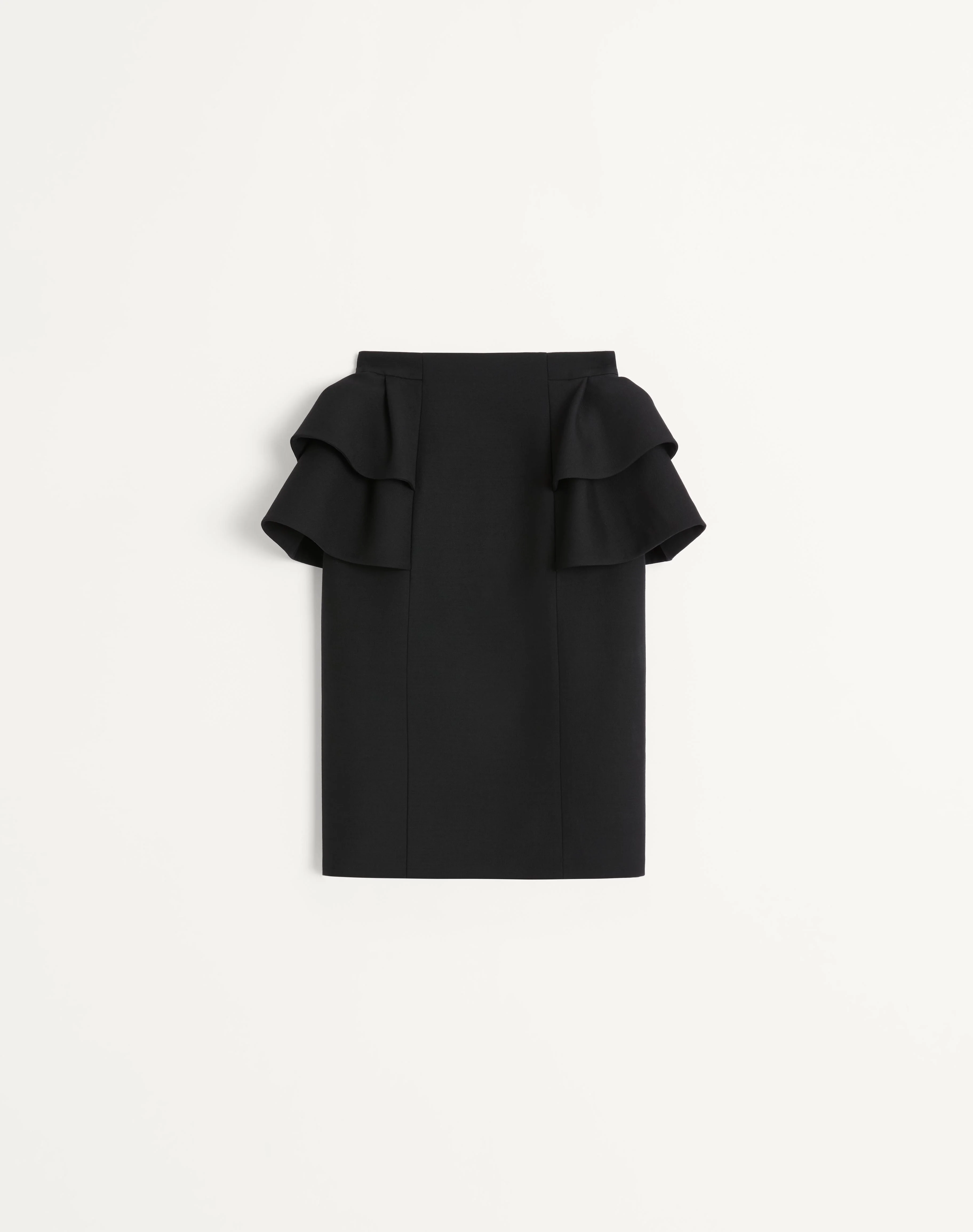 Crepe Couture midi skirt with ruffles at the hips - Rear zipper closure - Crepe Couture (65% Virgin Wool, 35% Silk) - Habotai lining (100% Silk) - Length: 105 cm / 41.3 in. from the shoulders in an Italian size 40 - The model is 176 cm / 5'9" tall and wears an Italian size 40 - Made in Italy The look of the model is completed by a Valentino Garavani Vain Bag and Valentino Garavani Hi Dolly Shoes. Product code: 7B3RADJ51CF_0NO