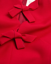 Short dress in Crepe Couture - Bow detail - V Gold detail - Rear zipper closure with hook-and-eye fastening - Crepe Couture (65% Virgin Wool, 35% Silk) - Lined - Length: 90 cm / 35.4 in. from the shoulders in an Italian size 40 - Sleeve length: 80 cm / 31.5 in. from the center back in an Italian size 40 - The model is 176 cm / 5'9" tall and wears an Italian size 40 - Made in Italy The look of the model is completed by a Valentino Garavani Vain Bag and Valentino Garavani Bowow Shoes. Product code: 6B3VAEV11CF_R9M