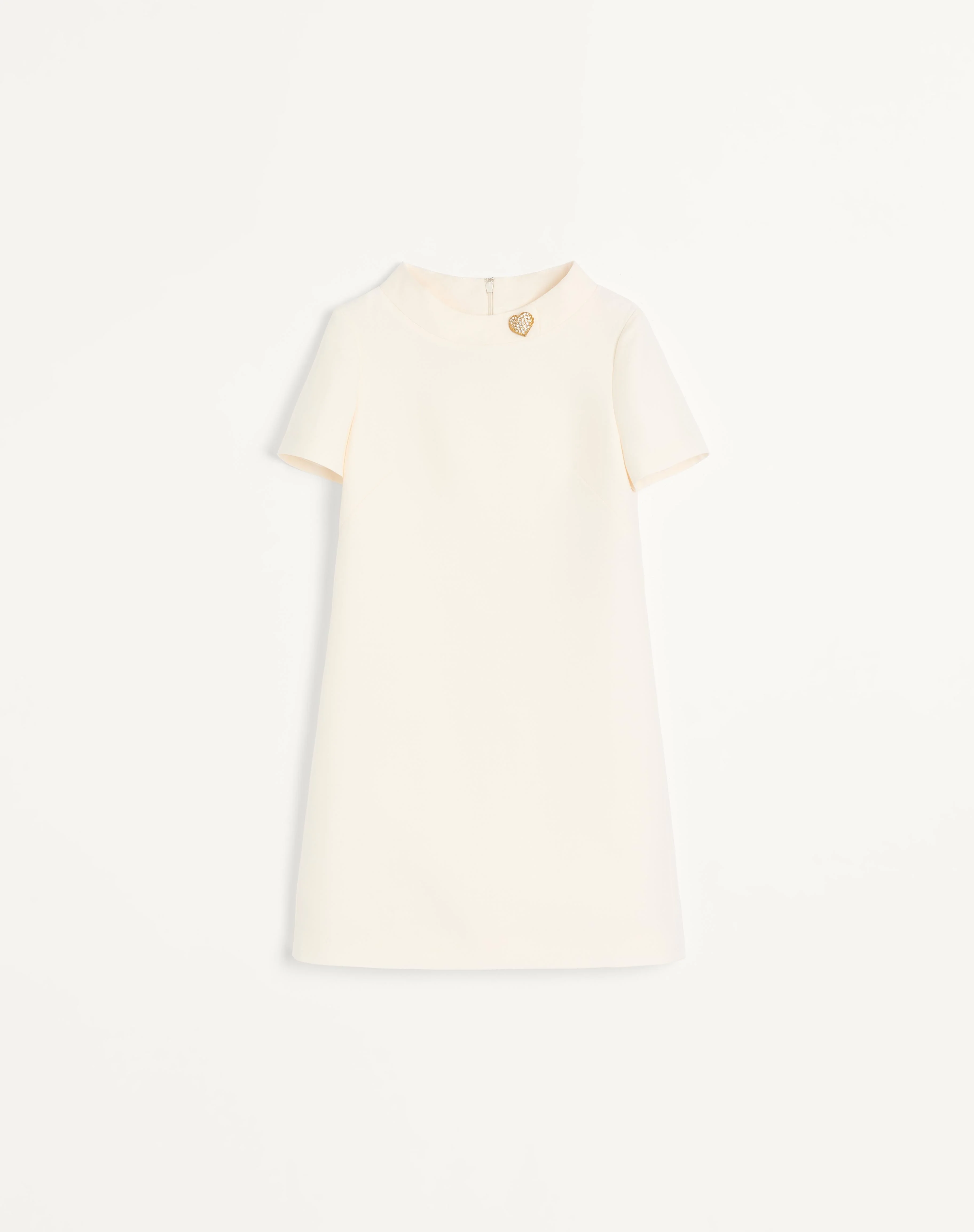 Short Crepe Couture dress with jeweled Heart button - Rear zipper closure - Crepe Couture (65% Virgin Wool, 35% Silk) - Habotai lining (100% Silk) - Length: 90 cm / 35.4 in. from the shoulders in an Italian size 40 - The model is 176 cm / 5'9" tall and wears an Italian size 40 - Made in Italy The look of the model is completed by a Valentino Garavani Vain Bag and Valentino Garavani Bowow Shoes. Product code: 7B3VAG751CF_A03