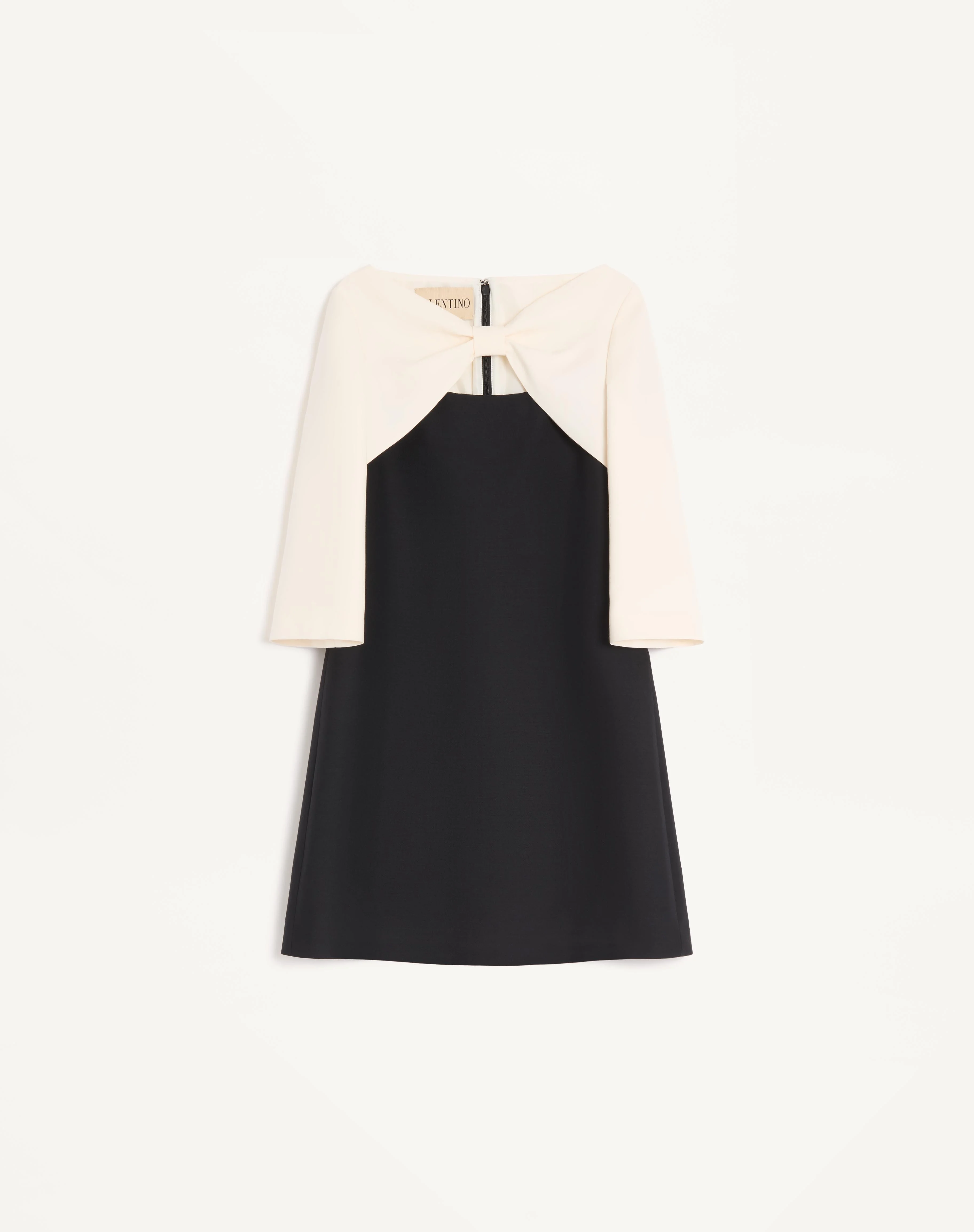 Crepe Couture dress with bow and contrasting sleeves - Rear closure with zipper and hook - Crepe Couture (65% Virgin Wool, 35% Silk) - Stretch Georgette lining (91% Viscose, 9% Elastane) - Length: 90 cm / 35.4 in. from the shoulders in an Italian size 40 - The model is 176 cm / 5'9" tall and wears an Italian size 40 - Made in Italy Product code: 8B3VAJ061CF_0NA