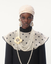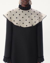 Short dress in Crepe Couture - Polka dot organza collar detail - Rear zipper closure with hook-and-eye fastening - Crepe Couture (65% Virgin Wool, 35% Silk) - Lined - Length: 90 cm / 35.4 in. from the shoulders in an Italian size 40 - Sleeve length: 80 cm / 31.5 in. from the center back in an Italian size 40 - The model is 176 cm / 5'9" tall and wears an Italian size 40 - Made in Italy The look of the model is completed by a Valentino Garavani Quiltie 67 Bag and Valentino Garavani Bowow Shoes. Product code: 6B3VAF951CF_TB1