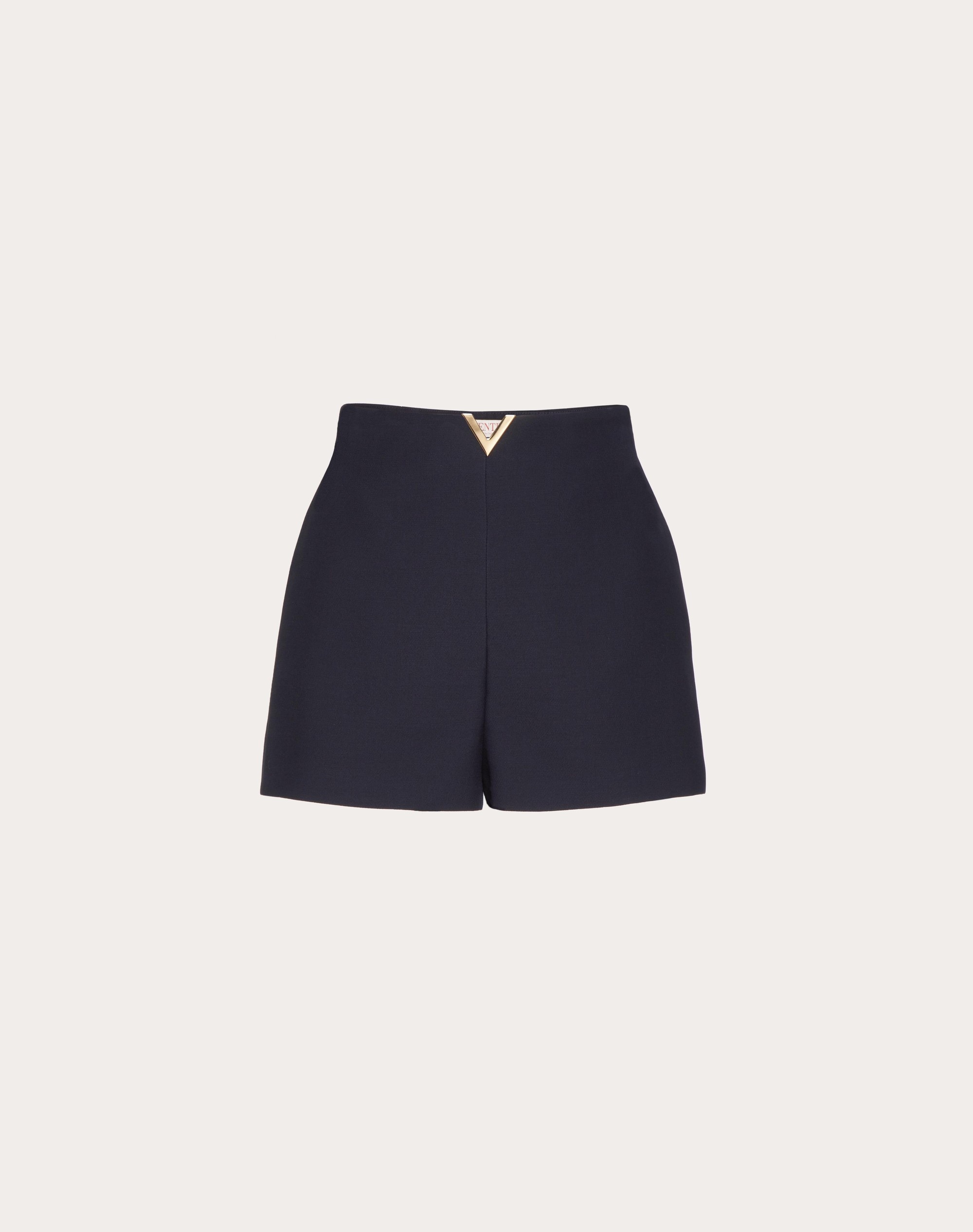 Valentino Shorts in Crepe Couture - V Gold detail at waist - Side fastening with concealed zip - Crepe Couture (65% Virgin Wool, 35% Silk - Habotai lining (100% Silk) - Length: 36.4 cm / 14.3 in. from the waist in an Italian size 40 - Leg opening: 69 cm / 27.1 in. in an Italian size 40 - Inseam: 6 cm / 2.3 in. in an Italian size 40 -The model is 176 cm / 5'9" tall and wears an Italian size 40 - Made in Italy Product code: 3B3RF2J01CF_598