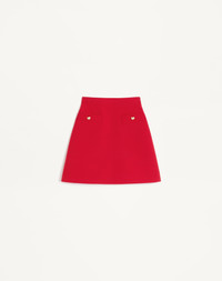 Crepe Couture skirt with Heart jewel buttons - Side zipper closure - Crepe Couture (65% Virgin Wool, 35% Silk) - Jacquard Flower VLogo Lining (75% Acetate, 25% Silk) - Length: 85 cm / 33.5 in. from the waist in an Italian size 40 - The model is 176 cm / 5'9" tall and wears an Italian size 40 - Made in Italy The look of the model is completed by a Valentino Garavani Viva Superstar Bag and Valentino Garavani Adamantine Shoes. Product code: 7B3RACM21CF_R9M