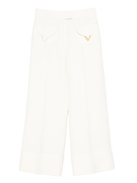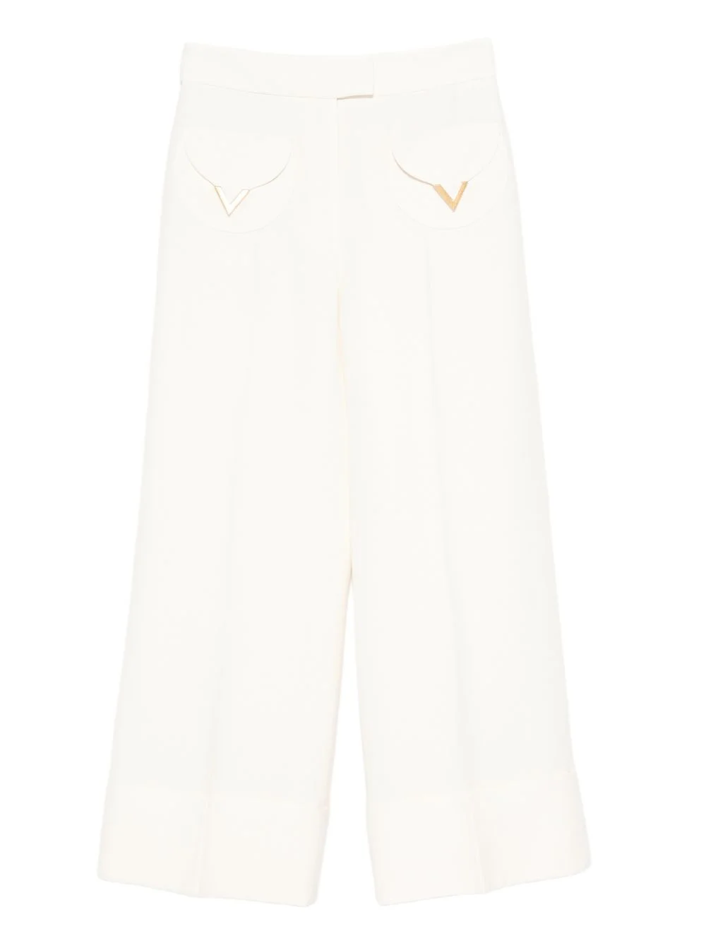 V-detail pocket trousers Highlights - Off-white - Gold-tone v-detail - Front flap pockets - Cuffed hem Made in Italy Composition Outer: Virgin Wool 65%, Silk 35% Lining: Viscose 100% SIZE & FIT Model measurements Height 5 ft 10 in(1.78 m) Bust/Chest 33.46 in(85 cm) Hips 36.22 in(92 cm) Waist 23.22 in(59 cm) Washing instructions Dry Clean Only