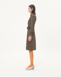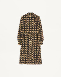 Crepe de Chine midi dress with Petit Charles print - Sash detail at waist - Pocket detail - Front closure with VLogo buttons - Petit Charles Crepe De Chine (100% Silk) - Unlined - Length: 110 cm / 43.3 in. from the shoulders in an Italian size 40 - The model is 176 cm / 5'9" tall and wears an Italian size 40 - Made in Italy The look of the model is completed by a Valentino Garavani Vain Bag and Valentino Garavani Adamantine Shoes. Product code: 7B3VAFK19G5_K92