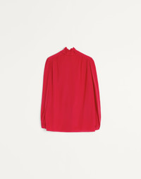 Crepe De Chine long-sleeved shirt - Bow detail with ruffles at the neck - Front button fastening - Crepe de Chine (100% Silk) - Unlined - Length: 70 cm / 27.6 in. from the shoulders in an Italian size 40 - Sleeve length: 83 cm / 32.7 in. from the center back in an Italian size 40 - The model is 176 cm / 5'9" tall and wears an Italian size 40 - Made in Italy The look of the model is completed by a Valentino Garavani Viva Superstar Bag and Valentino Garavani Bowow Shoes. Product code: 6B3AB77590F_R9M