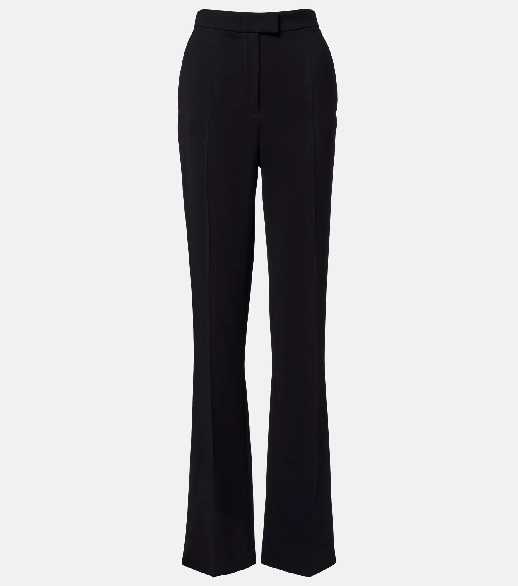 Valentino has become a symbol of crafting excellence, creativity, and uniqueness. Primed for your timeless tailoring collection, these crepe pants come in a straight silhouette with side slit pockets. Product Details - Material: 94% viscose, 6% elastane - Care instructions: dry clean - Made in Italy - Color: black - Designer color name: Nero - Lining: 98% viscose, 2% elastane - Closure: zipper fly, button and hook fastenings - Pockets: side slit pockets - Item number: P01165993 Size & Fit - True to size - Slightly stretchy fabric - Straight leg - High-waisted - The model seen in the picture is 178cm-5'10" and wearing a size IT 40