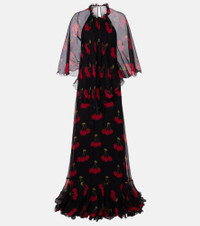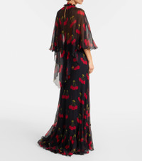 Made from swathes of pure silk Creponne Chiffon, Valentino brings fluidity to this piece. The gown is made in Italy and comes fully lined. Product Details - Material: 100% silk - Care instructions: dry clean - Made in Italy - Designer color name: Nero/Cherry - Item color: black, red - Material II: 100% silk - Lining: 91% viscose, 9% elastane - Closure: invisible zipper - Item number: P01060211 Size & Fit - Fits large to size - we recommend trying one size smaller - Low back - Semi-sheer - Cinched waist - Loose outer layer - Non-stretchy fabric - Height of model is 175cm-69" and wears a size IT 38