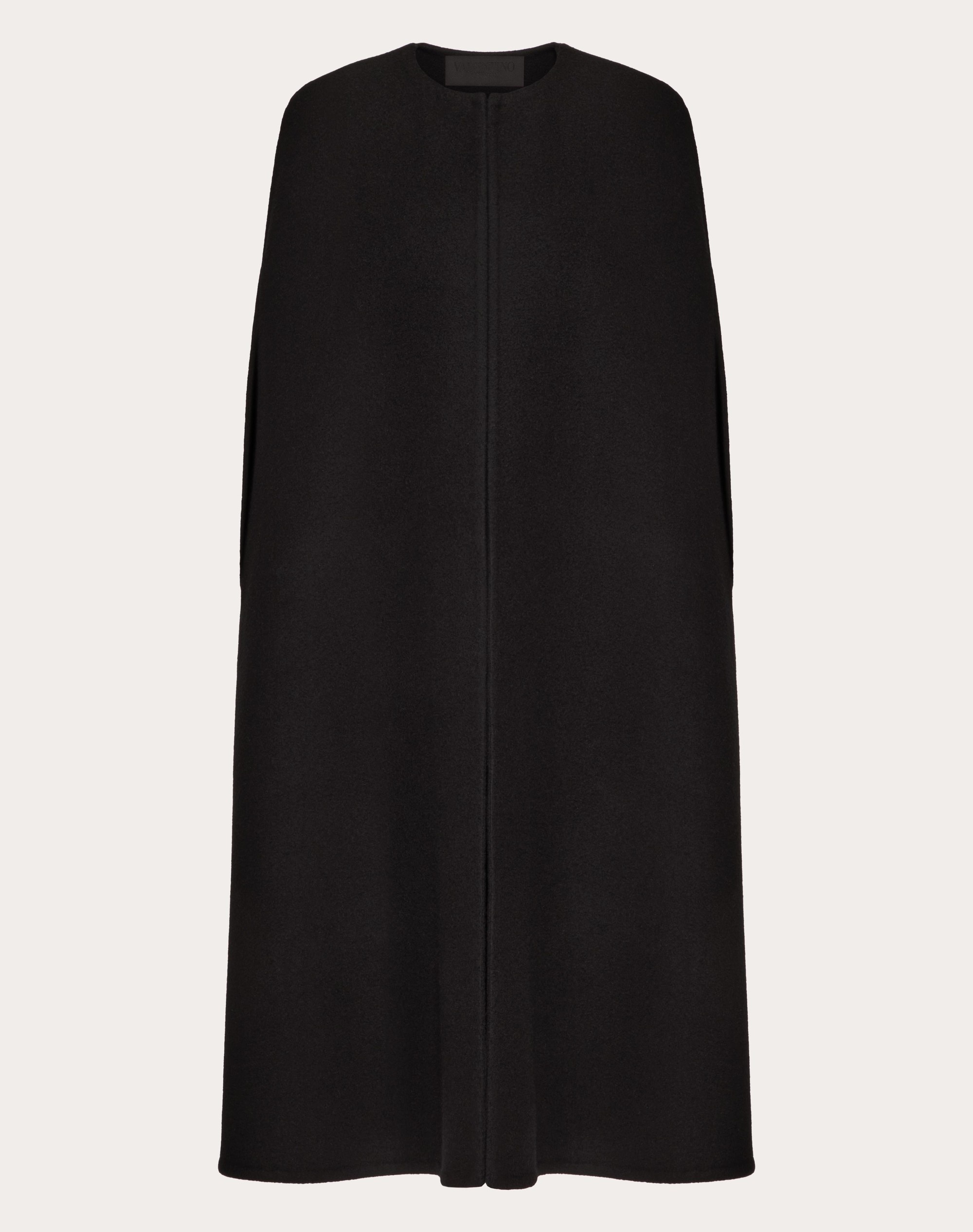 Fluffy Cashmere Blend Cape - Shoulder pads - Front hook fastening - Fluffy Cashmere Blend (90% Virgin Wool, 10% Cashmere) - Length: 110 cm / 43.3 in. from the shoulders in an Italian size 40 - The model is 176 cm / 5'9" tall and wears an Italian size 40 - Made in Italy The look of the model is completed by a Valentino Garavani Loco Bag and Valentino Garavani Shoes. Product code: 5B0CG4G08Y5_0NO