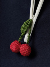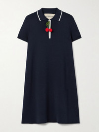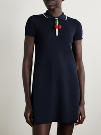 Valentino Garavani's mini dress delivers an unexpected dose of sweetness. It's made from finely ribbed cotton in a relaxed polo-inspired silhouette complete with white piping along the collar and crocheted cherries adorning the zip pull. Wear yours with loafers or sneakers. Size & Fit - Fits true to size, take your normal size - Designed for a close fit - Mid-weight knit - Model is 180cm/ 5’11” and is wearing a size XSmall Model measurements: - Bust: 81cm/ 32" - Waist: 64cm/ 25" - Hip: 89cm/ 35" Details & Care - Navy and ivory cotton - Concealed zip fastening along front - 100% cotton - Dry clean