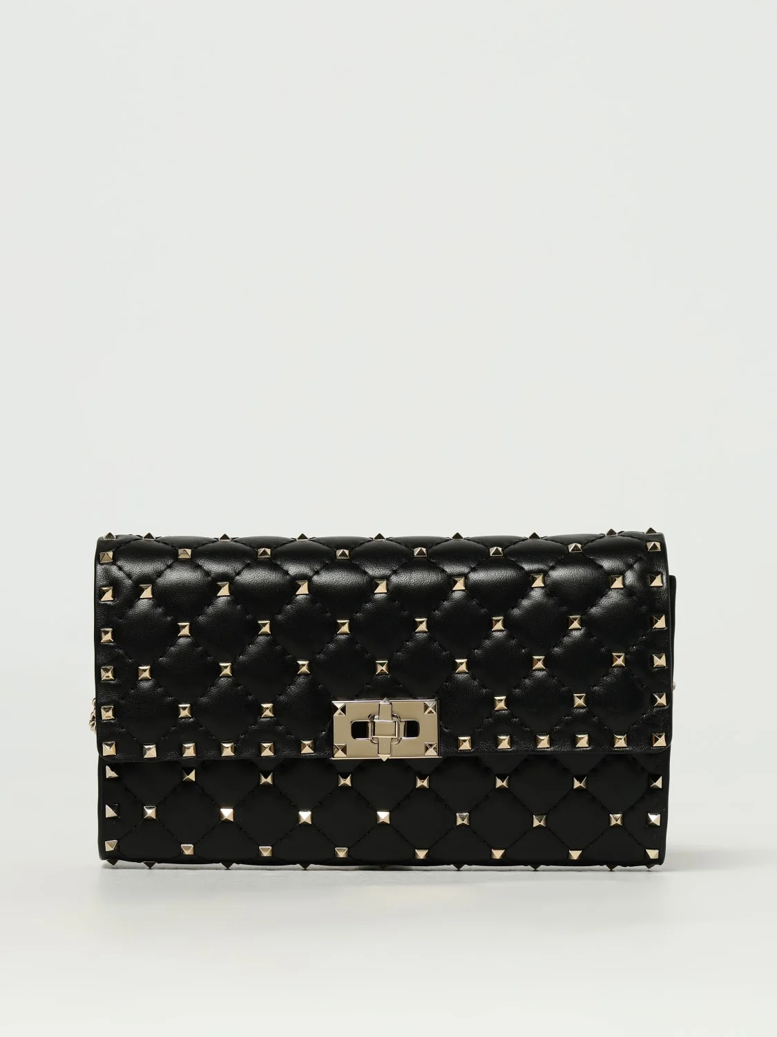 DESCRIPTION - Style: Rock - Logo: Engraved - Details: With studs - Lining: With 8 card slots - Model: Crossbody - Closure: With metal interlocking mechanism - Shape: Rectangular - Shoulder strap: Metal mesh - Measurements: Shoulder strap length from shoulder: 52 cm - Materials: Matelasse Nappa leather - Pattern: undefined DETAILS AND CARE Composition 100%calf leather SIZE AND FIT Sizes Width : 23,5 cm Height: 14 cm Depth: 5 cm Designer code: 7W2B0137NAP 0NO Giglio Code: H09095 Designer: Valentino Garavani Collection: Valentino Garavani Woman Category: Bags Valentino Garavani