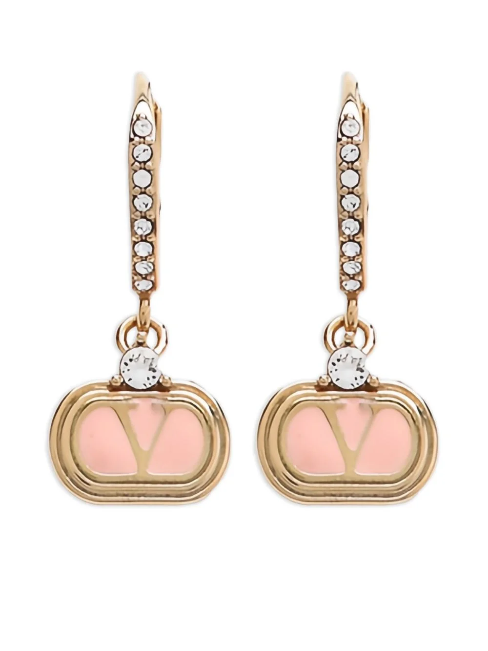 crystal-embellished VLogo Signature earrings Highlights - Gold-tone - Light pink - Brass construction - Vlogo signature - Oval-shaped plaque - Crystal embellishments - These earrings come as a pair. Made in Italy