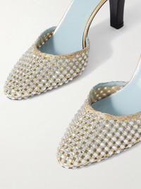 85 Suede-trimmed Embellished Metallic Mesh And Patent-leather Pumps