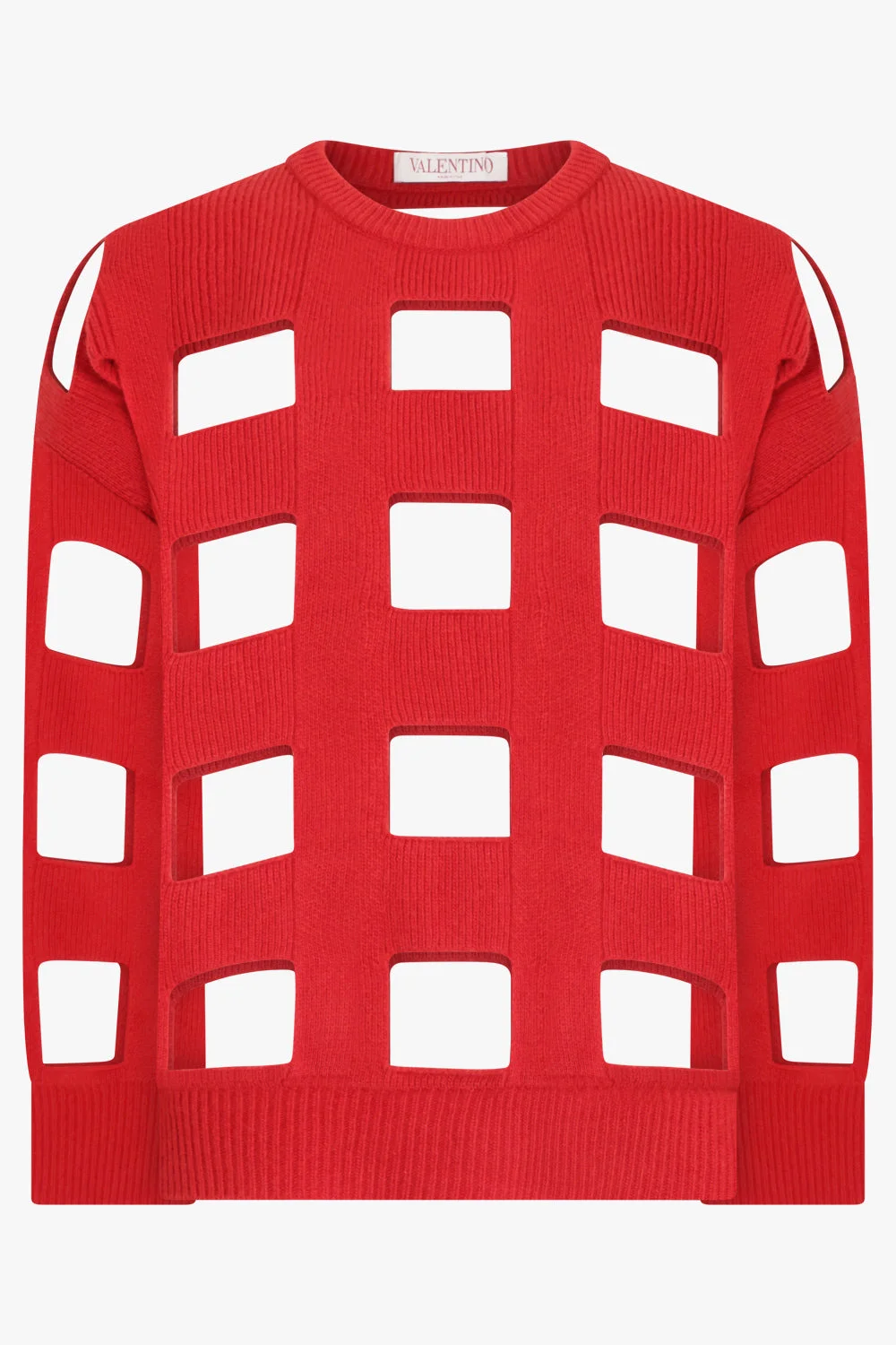 VALENTINO CUT OUT DETAIL WOOL JUMPER | ROSSO