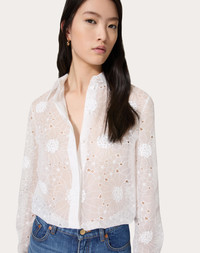 Daisy Organdis Shirt - Front concealed button fastening - Daisy Organdis (93% Cotton, 7% Polyester) - Unlined - Length: 75 cm / 29.5 in. from the shoulders in an Italian size 40 - Sleeve length: 83 cm / 32.7 in. from the center back in an Italian size 40 - The model is 176 cm / 5'9" tall and wears an Italian size 40 - Made in Italy The look of the model is completed by a Valentino Garavani VLOGO MOON Bag and Valentino Garavani VLogo Locker Shoes. Product code: 5B3AB6L88PF_A03