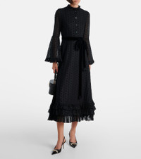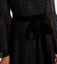 The Daisy Sangallo shirt dress by Valentino is crafted from pure cotton and features delicate ruffled accents at the hem, collar, and cuffs. The sleek silhouette is finished with floral broderie anglaise, and the belt softly defines the waist. Product Details - Material: 100% cotton - Care instructions: dry clean - Made in Italy - Designer color name: Nero - Item color: black - Material II: 100% cotton - Lining: 100% cotton - Details: 90% viscose, 10% polyamide - Contains non-textile parts of animal origin - Closure: partially buttoned front, invisible zipper - Attached belt - Item number: P01060190 Size & Fit - True to size - Loose fit, comes with belt - Non-stretchy fabric - The model seen in the picture is 178cm-5'10" and wearing a size IT 40