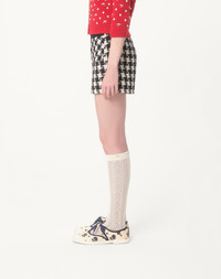 Damier Light Tweed Shorts - Zipper and hook-and-eye fastening - Damier Light Tweed (40% Acrylic, 37% Virgin Wool, 19% Cotton, 4% Polyamide) - Habotai lining (100% Silk) - Length: 33 cm / 13.0 in. from the waist in an Italian size 40 - Leg opening: 30 cm / 11.8 in. in an Italian size 40 - Inseam: 7.2 cm / 2.8 in. in an Italian size 40 -The model is 176 cm / 5'9" tall and wears an Italian size 40 - Made in Italy The look of the model is completed by a Valentino Garavani Quiltie 67 Bag and Valentino Garavani Bay By Bay Shoes. Product code: 6B3RF2W090K_0AN