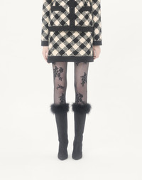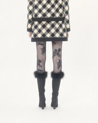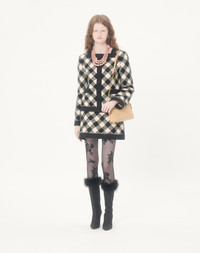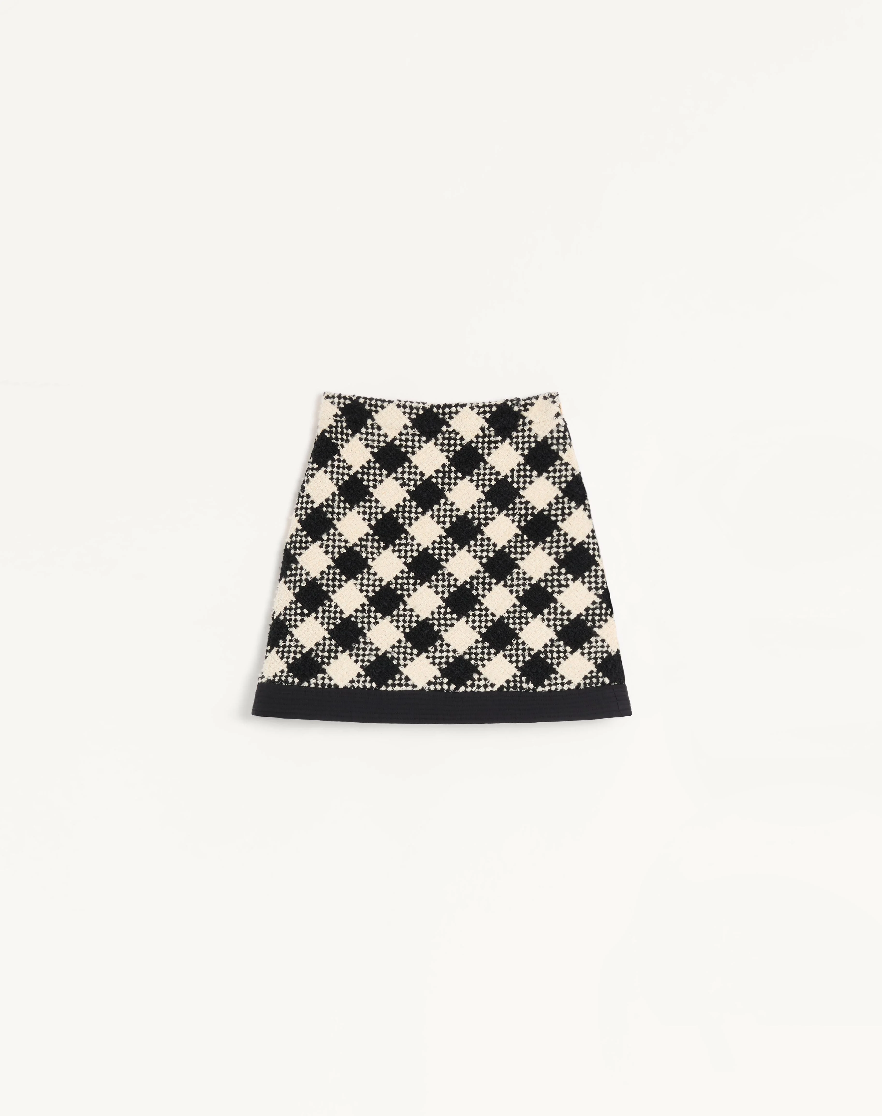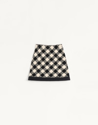 Damier Tweed skirt with Crepe Couture trim - Side zipper with hook-and-eye closure - Damier Tweed (44% Cotton, 18% Wool, 16% Viscose, 12% Acrylic, 8% Polyamide, 2% Mohair Wool) - Habotai floral lining (100% Silk) - Length: 44 cm / 17.3 in. from the waist in an Italian size 40 - The model is 176 cm / 5'9" tall and wears an Italian size 40 - Made in Italy Product code: 8B3RAEH89WK_R8E