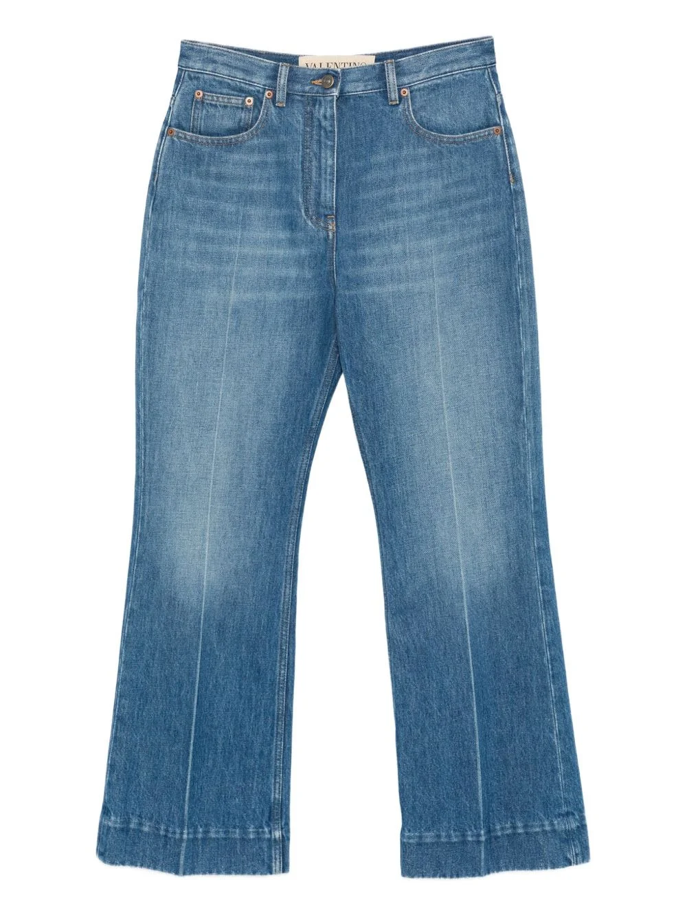 cropped flared jeans Highlights - Blue - Flared leg - Classic five pockets - Button fly - High rise Made in Italy Composition Lining: Polyester 65%, Cotton 35% Outer: Cotton 100% SIZE & FIT Model measurements Height 5 ft 9 in(1.76 m) Bust/Chest 32.28 in(82 cm) Hips 35.43 in(90 cm) Waist 25.19 in(64 cm) Washing instructions Hand Wash