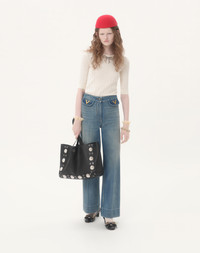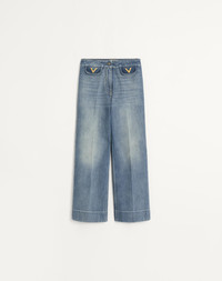 Denim Pants with V Gold - Front button and zipper closure - Medium Blue Denim (100% Cotton) - Length: 99 cm / 38.9 in. from the waist in an Italian size 40 - The model is 176 cm / 5'9" tall and wears an Italian size 40 - Made in Italy The look of the model is completed by a Valentino Garavani Bag and Valentino Garavani Bowow Shoes. Product code: 7B3DD21J9HC_558