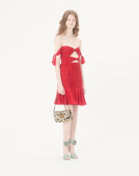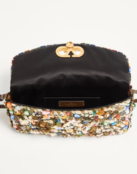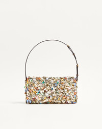 Valentino Garavani DeVain small shoulder bag with sequin and stone embroidery. VLogo Signature metal feature. The bag can be carried by hand or worn over the shoulder. - Main composition: organza, satin, sequins, resin stones - Antique brass-finish hardware - Details and adjustable handle in grainy calfskin - Magnetic closure with VLogo in antique brass-effect finish - Satin lining. Interior: slip pocket - Handle drop length: 14 cm / 5.5 in. at the central hole - This model features an additional piece of leather that can be attached to the bag with buckles - Handle drop length with an additional section: 19 cm / 7.5 in. at the central hole - Dimensions: W23.5xH12xD3 cm / W9.3xH4.7xD1.2 in. - Made in Italy This product contains magnets. Please consider if this product will be worn within 15 cm from any implanted device. Any concerns please contact your healthcare professional. Product code: 8W2B0T32KLA_R9H