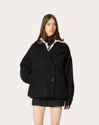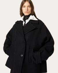 Diagonal Double Wool pea coat. - Double breasted - Oversize fit - Rear martingale - Double-faced design - Front button fastening - Diagonal Double Wool (77% Wool, 23% Polyamide) - Unlined - Length from shoulders: 72.5 cm / 28.5 in. for Italian size 40 - The model is 176 cm / 5’9” tall and wears an Italian size 40 - Made in Italy Product Code BCJ2706PJ_0NO