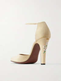 Valentino Garavani's 'Dolly' pumps are made from shantung and embroidered with dainty daisies in bloom. They're secured by a pin-thin ankle strap. Gold-tone 'VLogos' dot the tops of the 105mm heels.