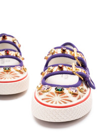 Dollyboard sneakers Highlights - Light beige - Double buckle fastening - Flat rubber sole - All-over floral embroidery - Glass crystal embellishment Made in Italy Composition Outer: Cotton 100%, glass 100% Lining: Fabric 100% Sole: Rubber 100%