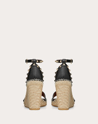 DOUBLE ROCKSTUD GRAINY CALFSKIN WEDGE SANDAL 105 MM