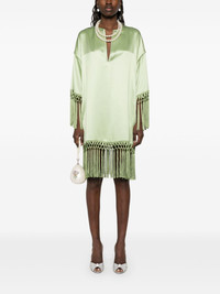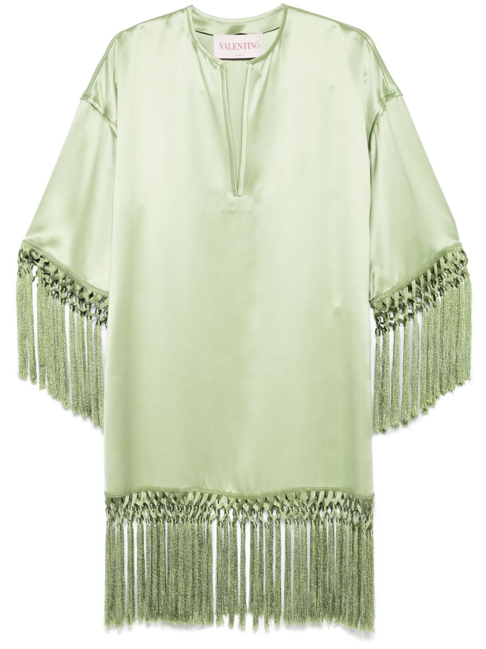 Cady Couture mini dress Highlights - Valentino ready to wear - Light green - V-neck - Short sleeves - Tasselled edge Made in Italy Composition Viscose 100%, Silk 100% SIZE & FIT Model measurements Height 5 ft 11 in(1.81 m) Bust/Chest 32.67 in(83 cm) Hips 36.22 in(92 cm) Waist 24.4 in(62 cm) FittingInformation Designed to be unstructured, offering a loose fit throughout Made from a midweight non-stretch fabric