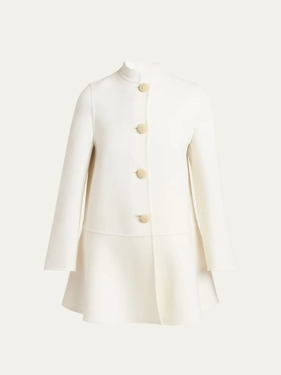 Valentino Garavani coat is tailored in a brushed woolcashmere blend adorned with bead embellished buttons and a flared hem panel Stand collar; singlebreasted front Long sleeves Straight fit Hem falls below the hip Virgin wool/cashmere Made in Italy