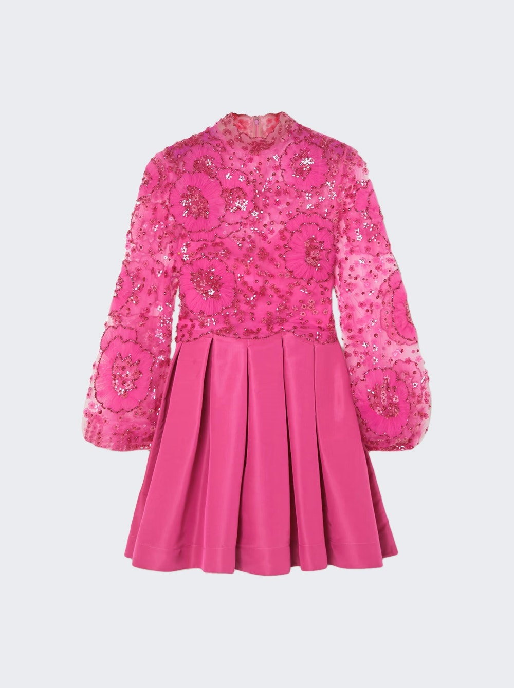 Details - Mini - with embroidered floral and beading throughout bodice - High neckline - Long, loose sleeve - Flared skirt - Above-the-knee hem Dimensions: Model is 5'9"/175cm and is wearing a size 40 Composition: fabric blend Care: care according to label Brand Style: 2B3VA2E56DE Designer/Brand: VALENTINO
