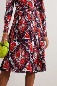 EDITORS'NOTES Valentino's archival 'Manifesto' print is a house signature this season. Made from silk crepe de chine, this skirt is gently pleated and has a straight shape that's ideal for the daytime. It wouldn't be complete without the signature 'V' logo embellishment. SIZE & FIT - Fits large to size, take one size smaller than normal - Falls below the knee - Midi-length, designed to be worn at the waist - Lightweight, non-stretchy fabric - Model is 177cm/ 5'10" and is wearing an IT 38 DETAILS & CARE - Midnight-blue, red and white silk crepe de chine - Concealed hook and zip fastening at side - 100% silk - Dry clean Large to size. See Size & Fit notes.