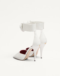 Valentino Garavani Drip Rose kidskin sandal - Strap with rose leather detail and crystal appliques - Adjustable velcro strap - VLogo Signature detail with antique brass effect finish - Heel height: 105 mm / 4.1 in. - Made in Italy Product code: 7W0S0MY5RDW_K81