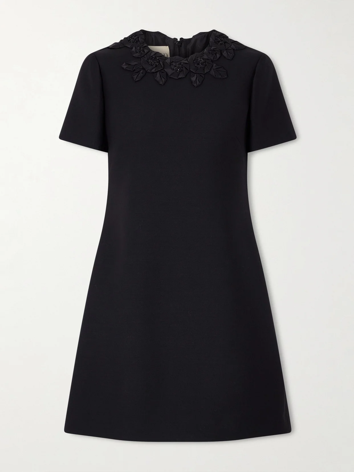Embellished Silk-trimmed Wool And Silk-blend Crepe Mini Dress