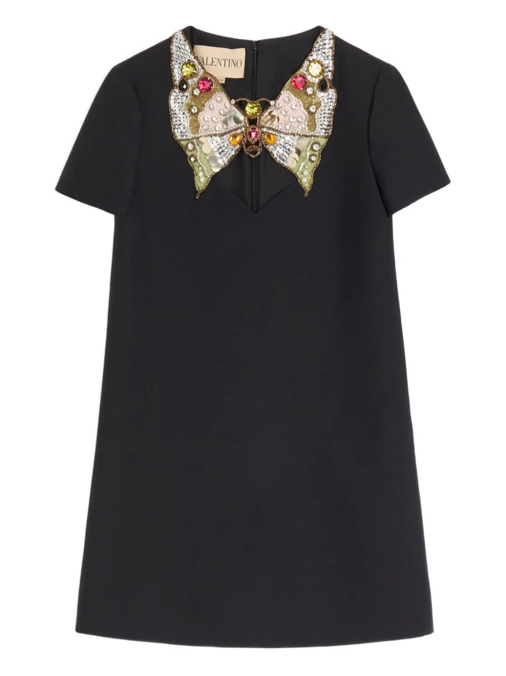 mini butterfly-detail dress Highlights - Black - Butterfly detail - Back zip closure - Hook-and-eye closure Made in Italy Composition Wool 65%, Silk 35% Washing instructions Read Manufacturer Guidelines