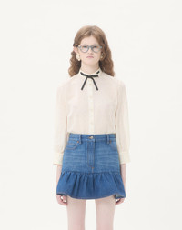 Daisy Sangallo Polka Dot Shirt - Grosgrain Bow Detail - Front closure with mother-of-pearl buttons and rhinestones - Daisy Sangallo Polka Dots (93% Cotton, 7% Polyester) - Length: 66 cm / 26 in. from the shoulders in an Italian size 40 - The model is 176 cm / 5'9" tall and wears an Italian size 40 - Made in Italy The look of the model is completed by a Valentino Garavani Le Chat de La Maison Bag and Valentino Garavani Adamantine Shoes. Product code: 7B3AB7P39EU_A03