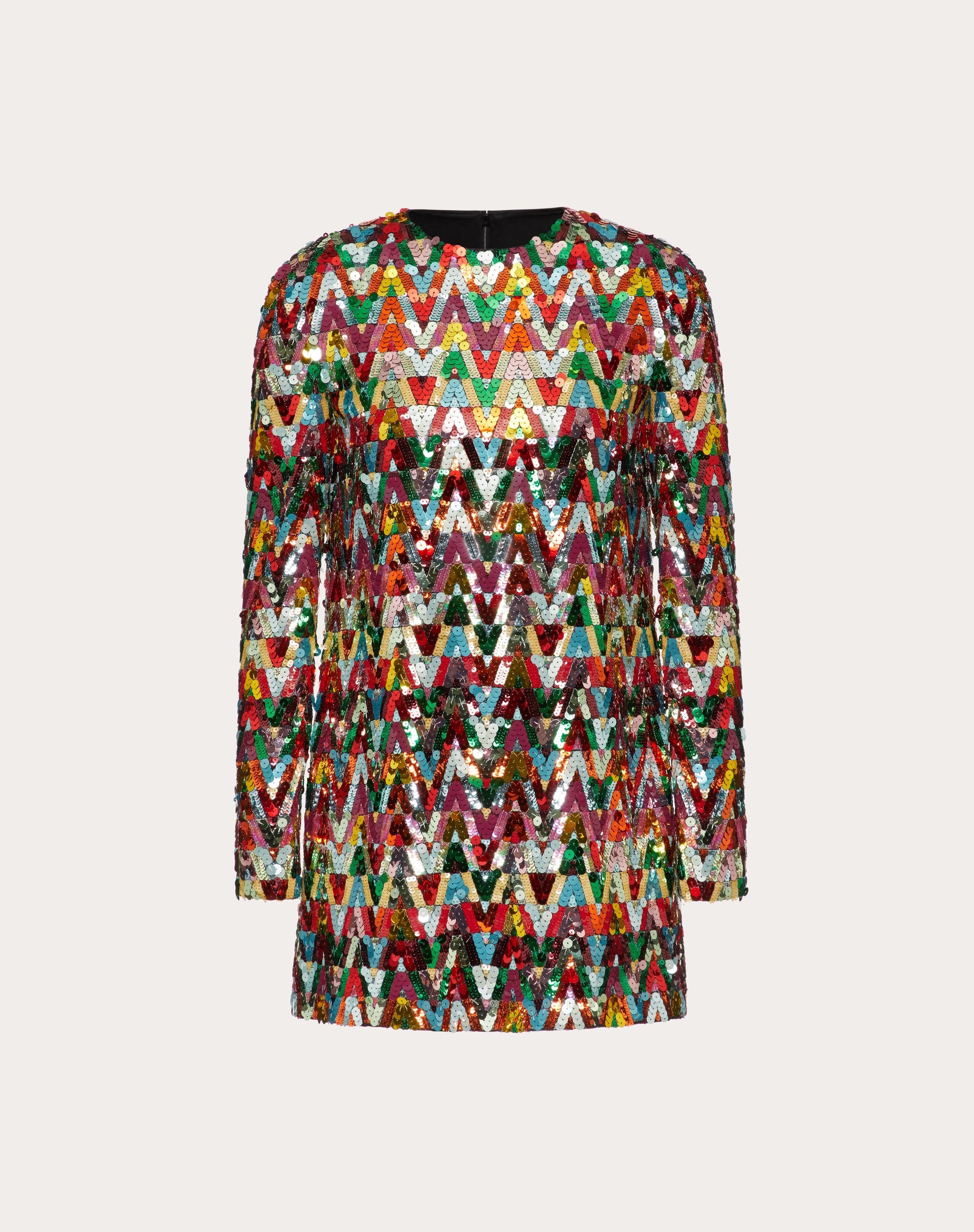 V Optical Valentino Archive 1973 Chiffon embroidery dress. - V Optical Valentino Archive 1973 sequin embroidery - Concealed rear zipper and hook-and-eye fastening - Chiffon (100% Silk) - Stretch Georgette lining (91% Viscose, 9% Elastane) - Length from shoulders: 85 cm/33.5 in for Italian size 40 - The model is 176 cm/5’9” tall and is wearing an Italian size 40 - Made in Italy Product Code BVAXQ02UP_M12