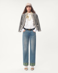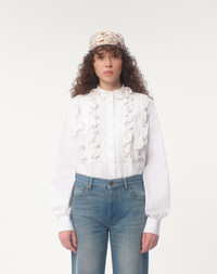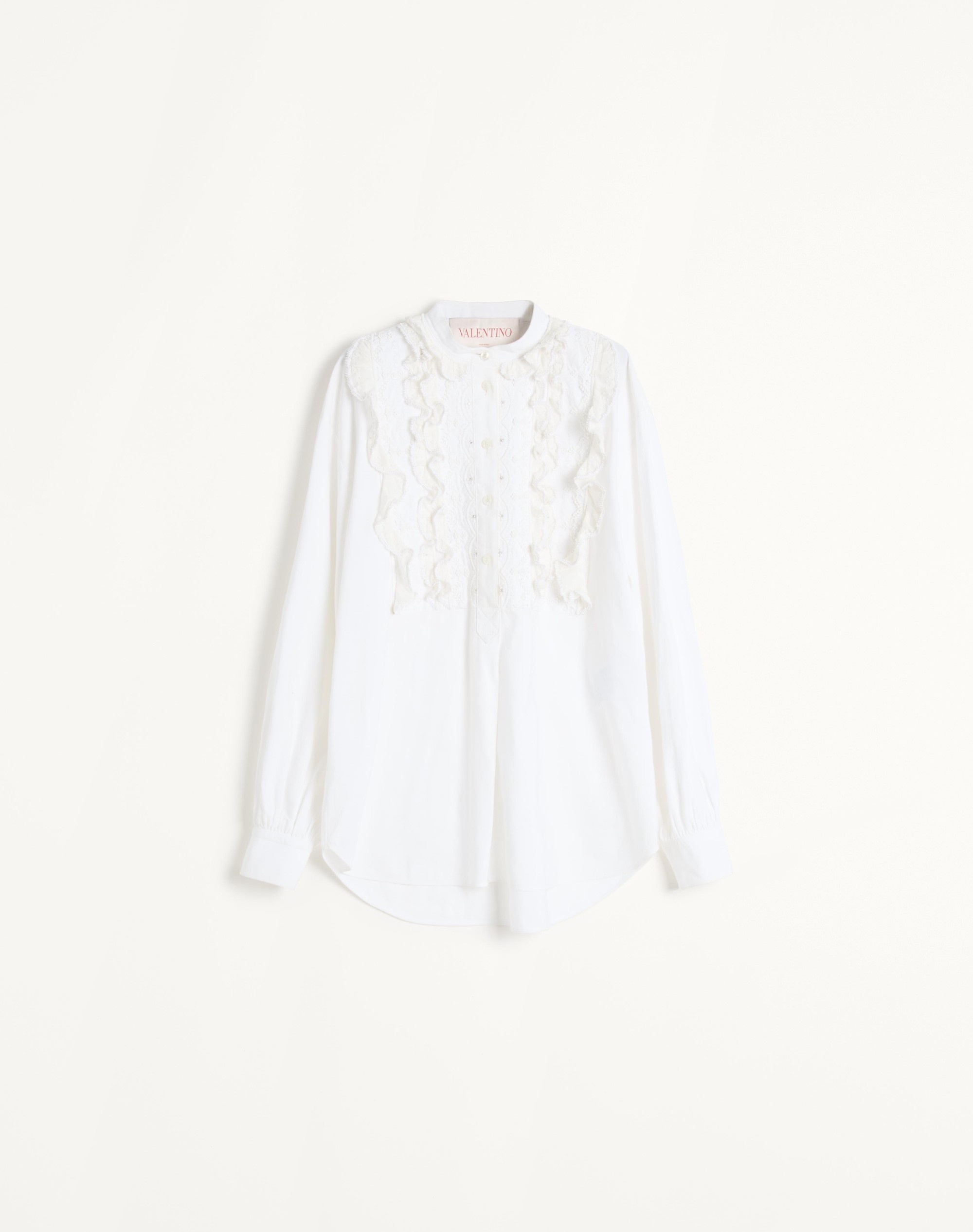 Embroidered Cotton and Linen Top - Micro element embroidery on plastron - Front ruffle detail - Front button closure - Cotton and Linen (53% Cotton, 45% Linen, 2% Silk) - Unlined - - Length: 75 cm / 29.5 in. from the shoulders in an Italian size 40 - Sleeve length: 83 cm / 32.7 in. from the center back in an Italian size 40 - The model is 176 cm / 5'9" tall and wears an Italian size 40 - Made in Italy The look of the model is completed by Valentino Garavani Shoes. Product code: 6B3AEAB390D_0BO