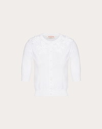 Embroidered cotton cardigan - Hibiscus embroidery detail - Cotton (100% cotton) - Length: 47 cm / 18.5 in. from the shoulders in an Italian size S - Sleeve length: 48 cm / 18.8 in. from the center back in an Italian size S - The model is 176 cm / 5'9" tall and wears in an Italian size S - Made in Italy The look of the model is completed by a Valentino Garavani VLogo Soft Bag and Valentino Garavani Rockstud Shoes. Product code: 4B0KA07Q8LQ_0BO Embroidered cotton cardigan - Hibiscus embroidery detail - Cotton (100% cotton) - Length: 47 cm / 18.5 in. from the shoulders in an Italian size S - Sleeve length: 48 cm / 18.8 in. from the center back in an Italian size S - The model is 176 cm / 5'9" tall and wears in an Italian size S - Made in Italy The look of the model is completed by a Valentino Garavani VLogo Soft Bag and Valentino Garavani Rockstud Shoes. Product code: 4B0KA07Q8LQ_0BO