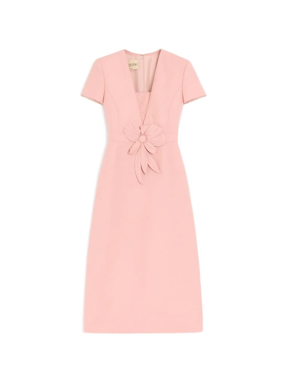 embroidered crepe couture dress Highlights - Light pink - Tone-on-tone embroidery - Flower detailing - Lace inlay - Rear closure - Zip fastening Made in Italy Composition Wool 65%, Silk 35% Washing instructions Read Manufacturer Guidelines