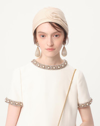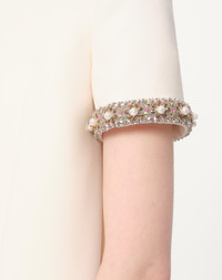 Short dress in Embroidered Crepe Couture - Embroidery of pearls and micro elements on neckline and sleeves - Rear zipper closure with hook-and-eye fastening - Crepe Couture (65% Virgin Wool, 35% Silk) - Habotai lining (100% Silk) - Length: 90 cm / 35.4 in. from the shoulders in an Italian size 40 - Sleeve length: 84.5 cm / 33.2 in. from the center back in an Italian size 40 - The model is 176 cm / 5'9" tall and wears an Italian size 40 - Made in Italy The look of the model is completed by a Valentino Garavani Carry Secrets Bag and Valentino Garavani Bowow Shoes. Product code: 6B3VAEZ61CF_AM0