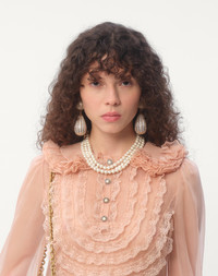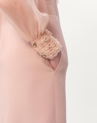 Short dress in Embroidered Crepe Couture - Partial lace and organza embroidery - Rear zipper closure with hook-and-eye fastening - Crepe Couture (65% Virgin Wool, 35% Silk) - Habotai lining (100% Silk) - Length: 90 cm / 35.4 in. from the shoulders in an Italian size 40 - Sleeve length: 84.5 cm / 33.2 in. from the center back in an Italian size 40 - The model is 176 cm / 5'9" tall and wears an Italian size 40 - Made in Italy The look of the model is completed by a Valentino Garavani Vain Bag and Valentino Garavani Bowow Shoes. Product code: 6B3VAEJ71CF_0LZ