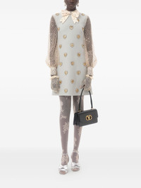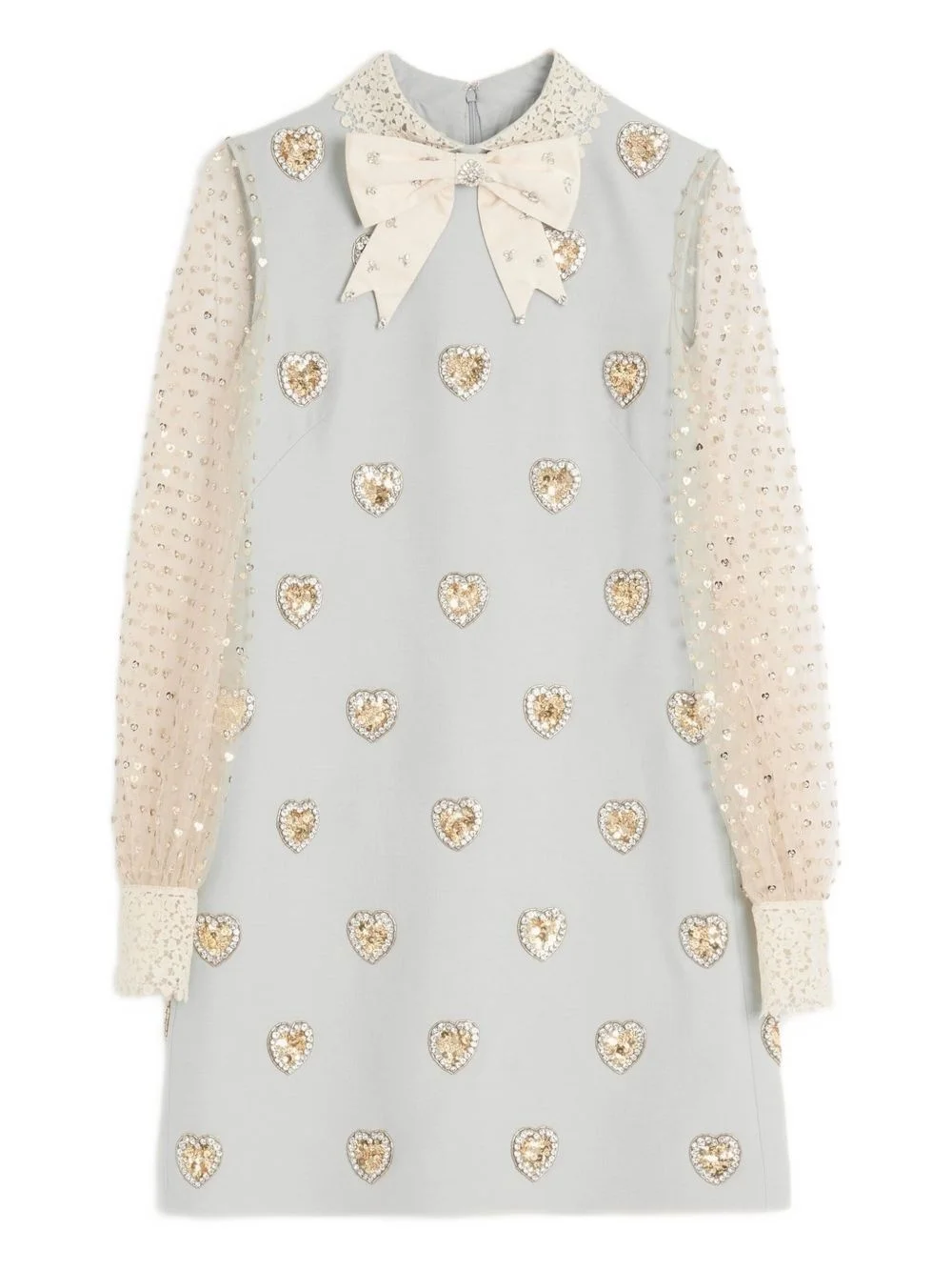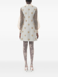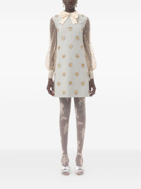 Crepe Couture embroidered mini dress Highlights - Blue - Rear zip fastening - Long sleeves - Bow detailing - Semi-sheer construction Made in Italy Composition Outer: Wool 65%, Silk 35% Lining: Silk 100% Washing instructions Read Manufacturer Guidelines